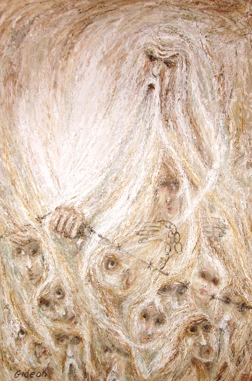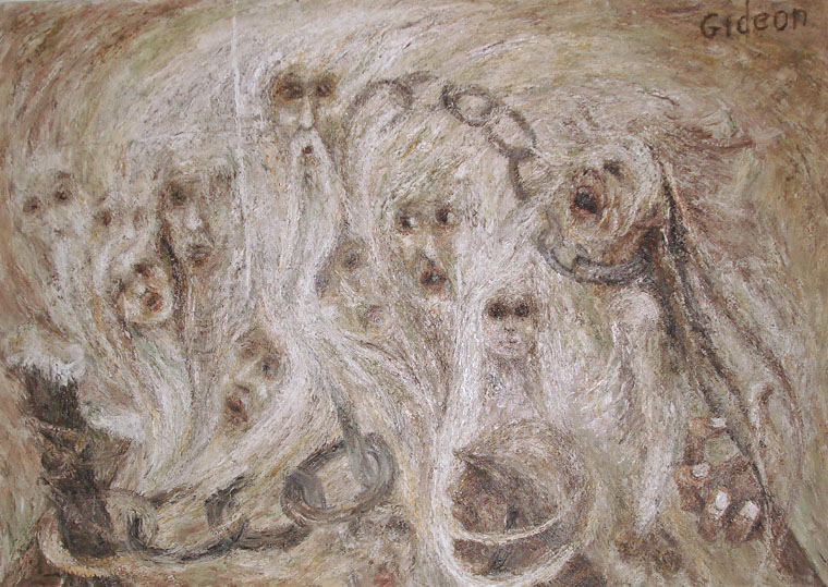 Gideon created magnificent works of art from these memories, each serving as a priceless piece of history. These are some of Gideon’s most valued possessions, for they are his savored memories of one of the most terrible atrocities in history and stand to hold the memories of the millions who suffered and perished. This terrible event, burned in his soul, has continued till this day with his adding to the portrayal of it in his art.